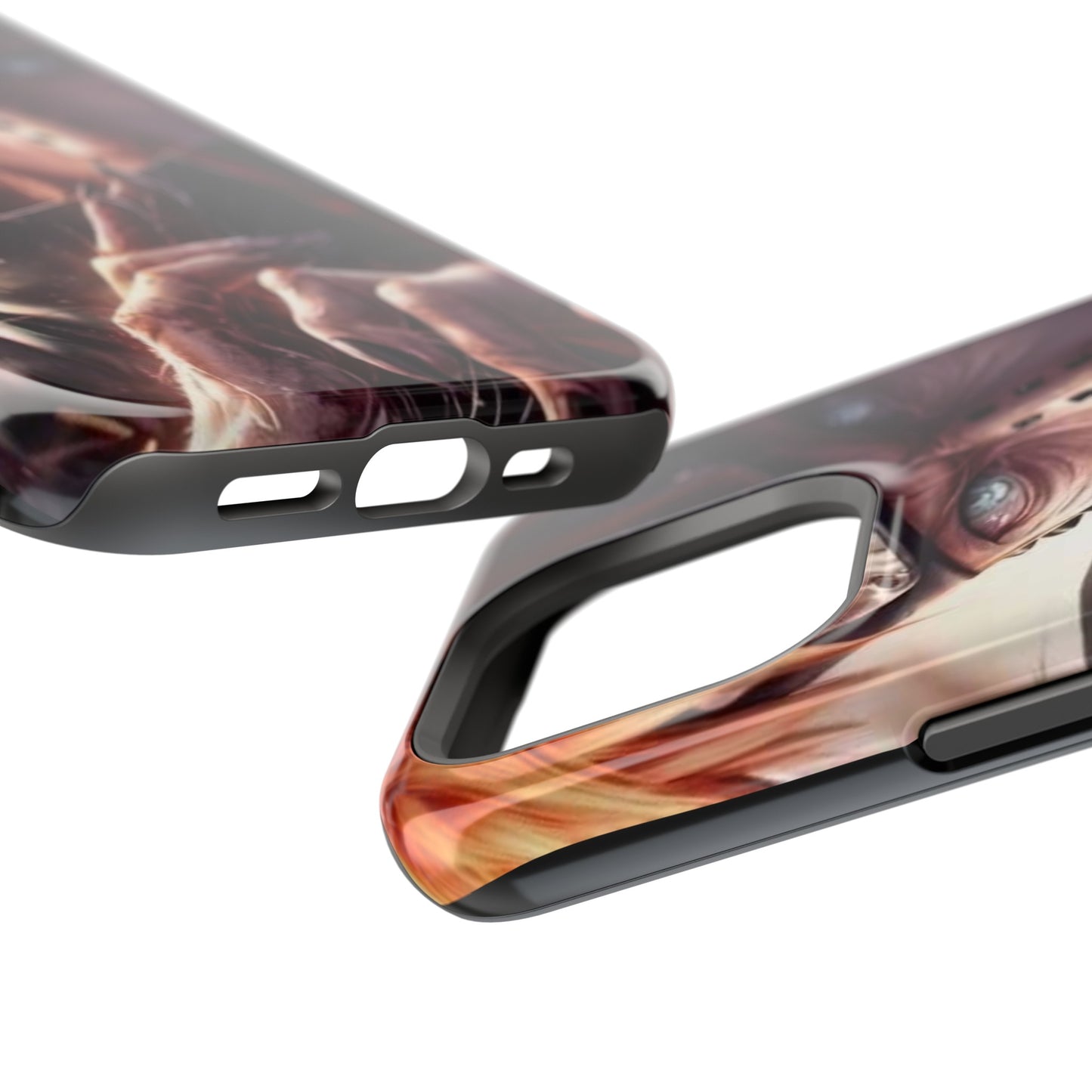 When aesthetics meet function, this custom magnetic tough case is born. Equipped with an outer polycarbonate shell and inner black TPU lining, this case delivers robust protection thanks to its durable, flexible, impact-resistant nature. Available in a matte or glossy finish, each case comes with an embedded magnet to enhance compatibility with Apple MagSafe® accessories and a stunning print that fully wraps around your case's exterior.